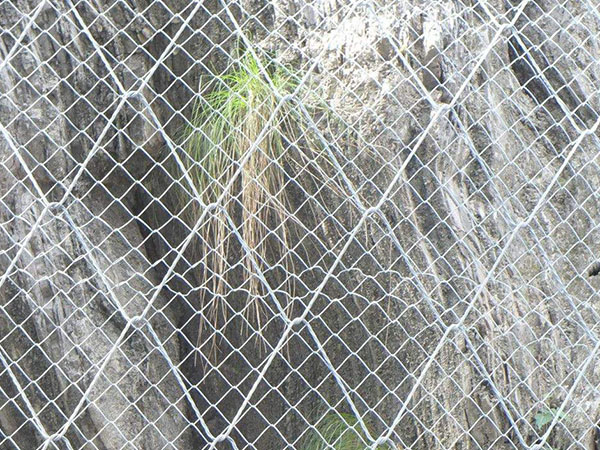 蜘蛛网是将以钢丝绳网为主的栅栏设置于斜坡上相应方位,用于阻挠斜面坡上的滚落石以防止其损坏维护的目标。当设置于泥石流区内时,便可构成阻挠泥石流体内固体大颗粒的柔性格栅坝。蜘蛛网是在公路周围立一道钢丝绳网和菱形网复合防护层,如有下跌的石头将被网子挡住,维护下面的汽车等,这种办法应用于坡度小的山崖防护。